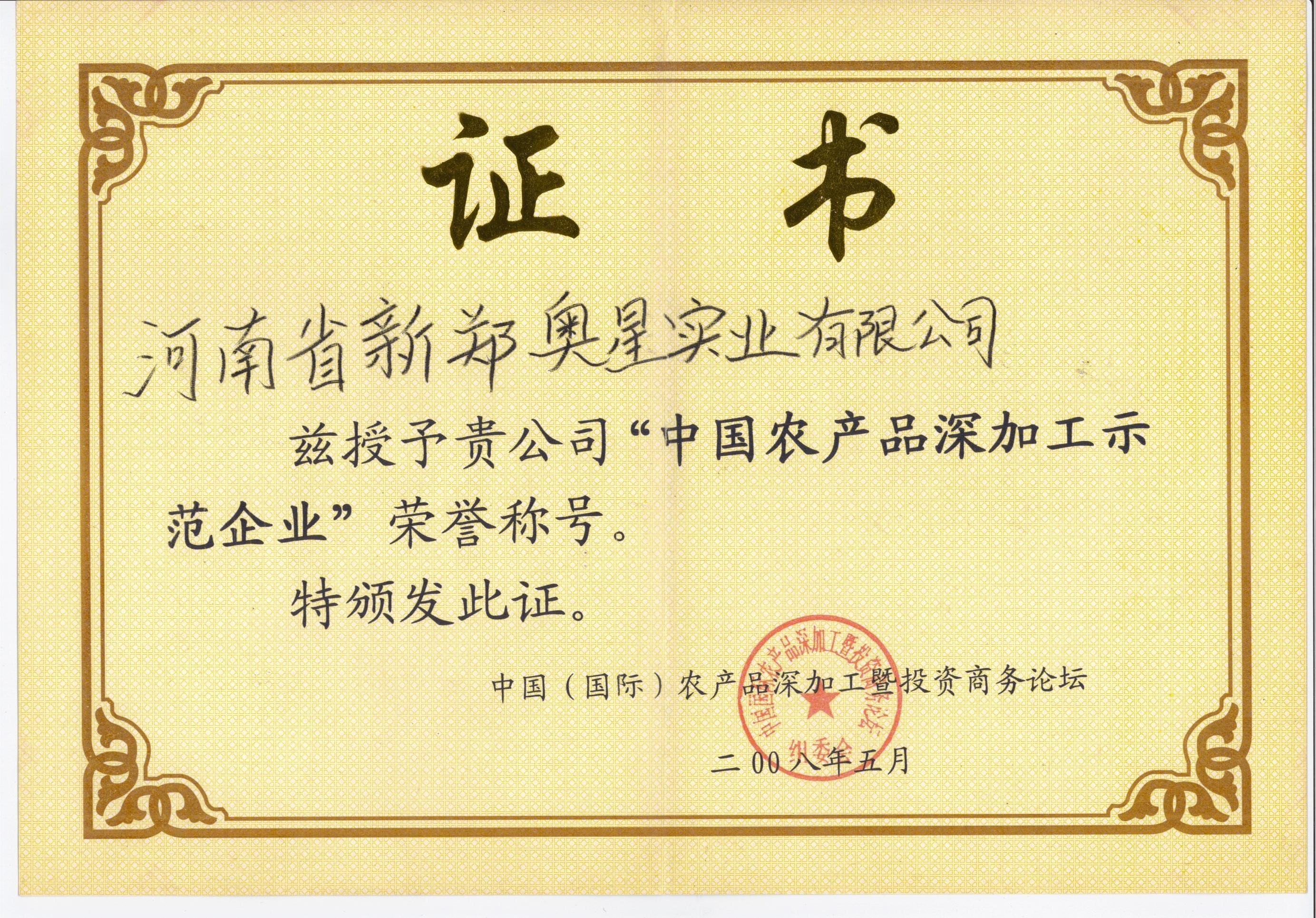 中国农产品深加工示范企业
