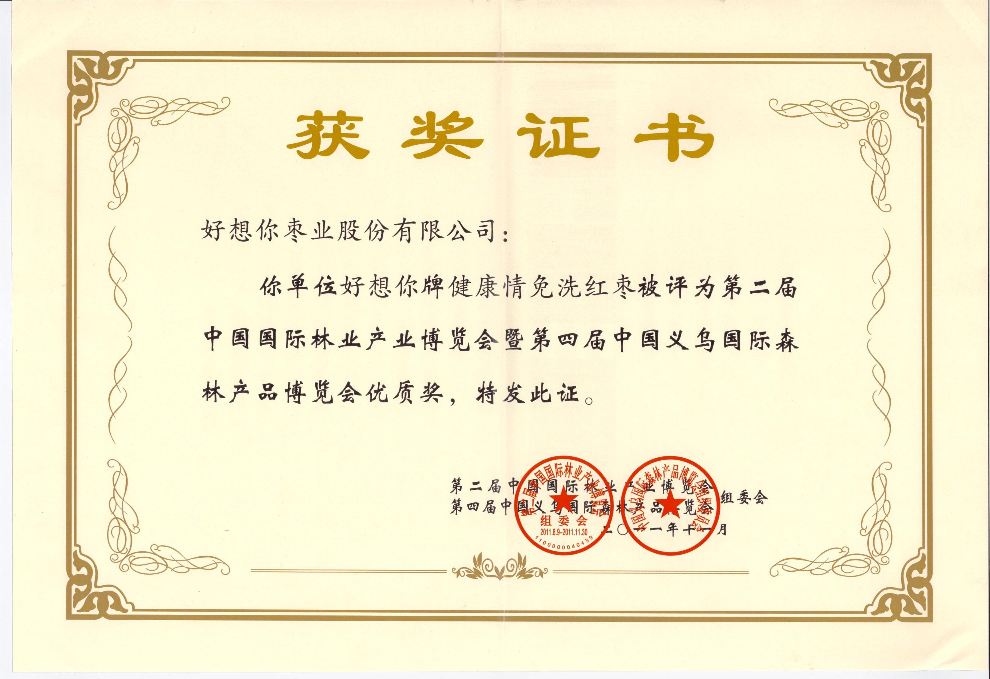 第二届中国国际林业产业博览会暨第四届中国义乌国际森林产品博览会优质奖