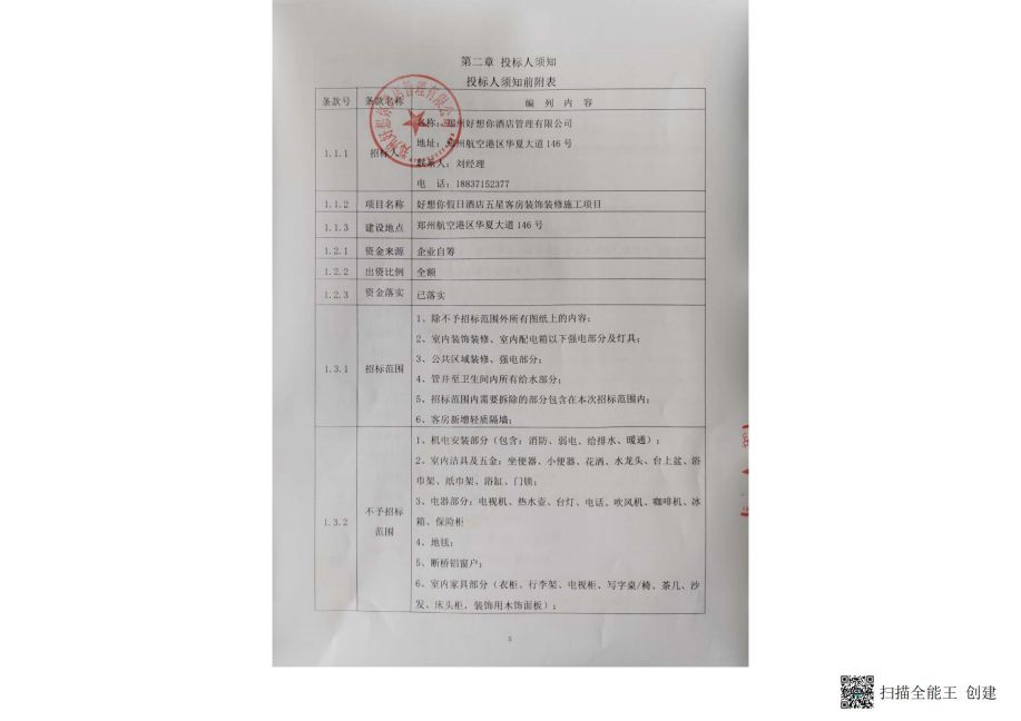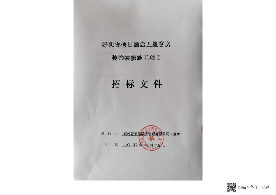 以诚为本赢在诚信9001假日酒店五星客房装饰装修施工项目招标公告.pdf